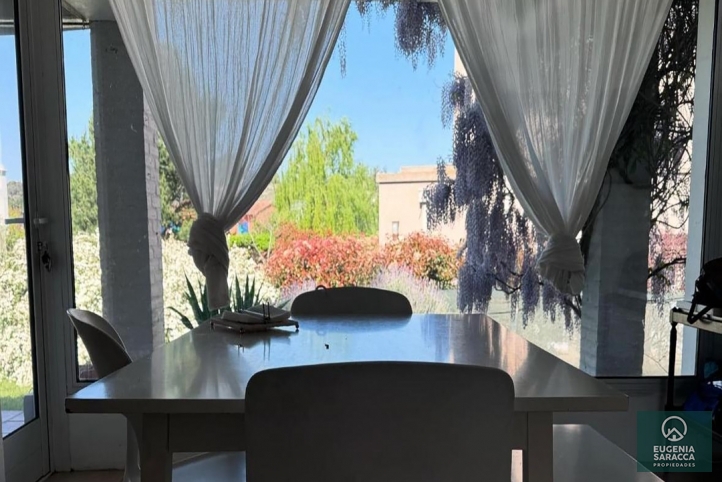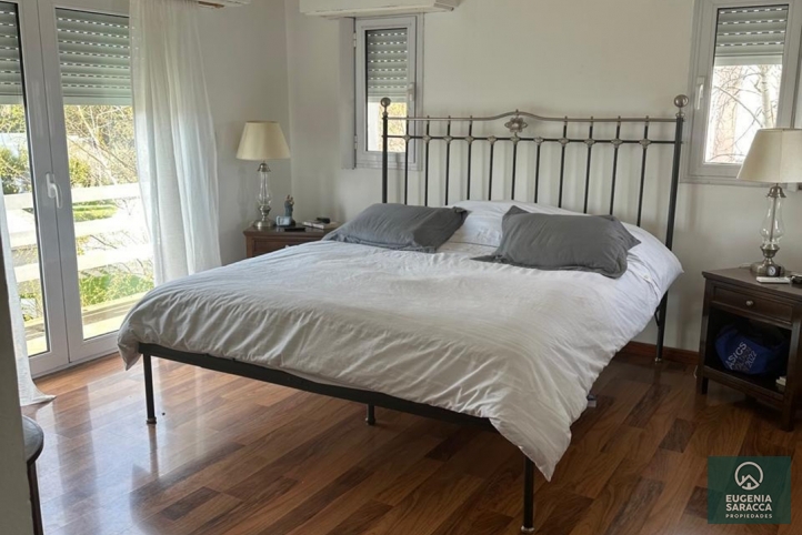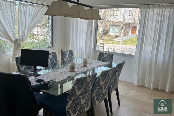 Planta baja: Living, escritorio, toilette, cocina comedor, lavadero, garage cubierto con toilette exterior, galería con parrilla, jardín con arboleda. Planta alta: Dormitorio principal en suite (baño + vestidor), 2 dormitorios, con baño
