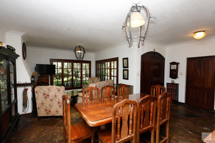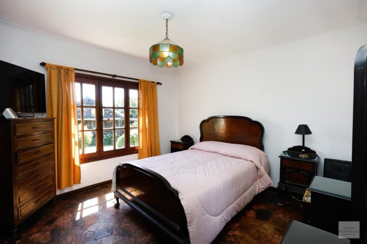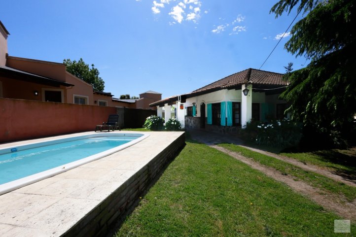 La propiedad principal cuenta con living comedor amplio, cocina separada con comedor diario y lavadero, dos baños y tres dormitorios. Galería, patio y piscina.