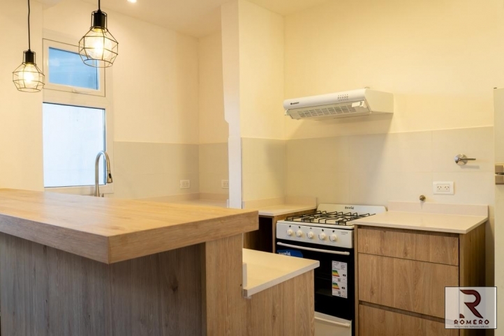 Departamento ubicado al frente, distribuido todo en una planta, que cuenta con living-comedor, cocina comedor con barra desayunadora, 1 baño con placard, 1 dormitorio con placard, patio con mesada y parrilla.