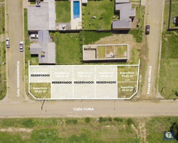 Medidas: 3 LOTES de 10 mts de frente por 15 mts de fondo, 4 LOCALES de 7,50 mts de frente por 9,90 mts de fondo.