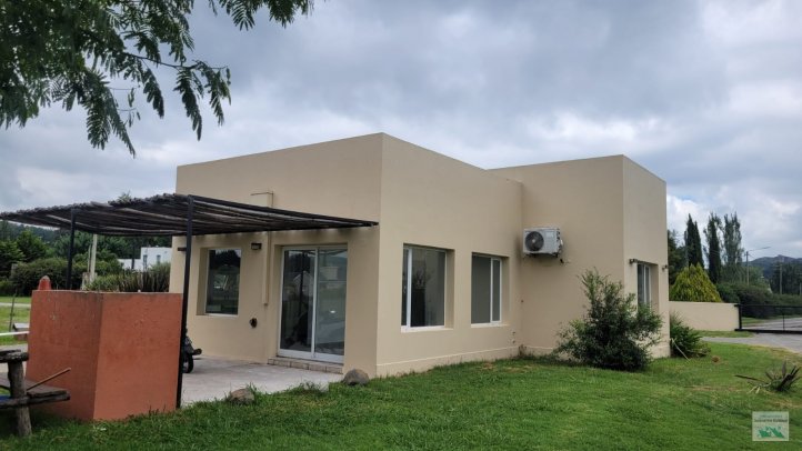 Casa en alquiler en hermoso complejo natural con vista a las sierras, zona El Dique. 1 Dormitorio, parque verde cerrado, entrada de auto techada.