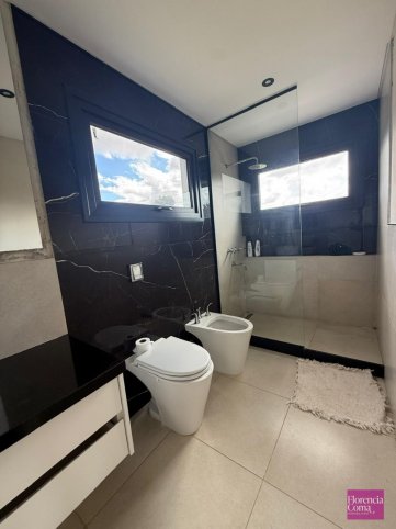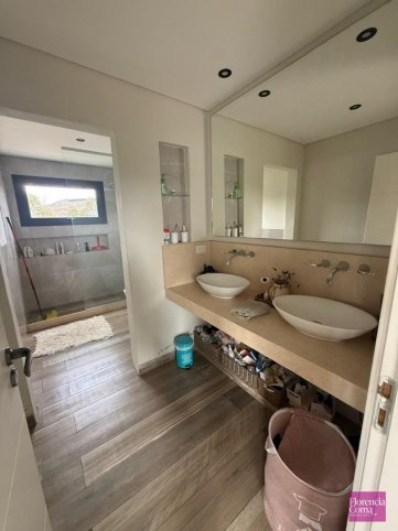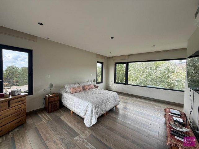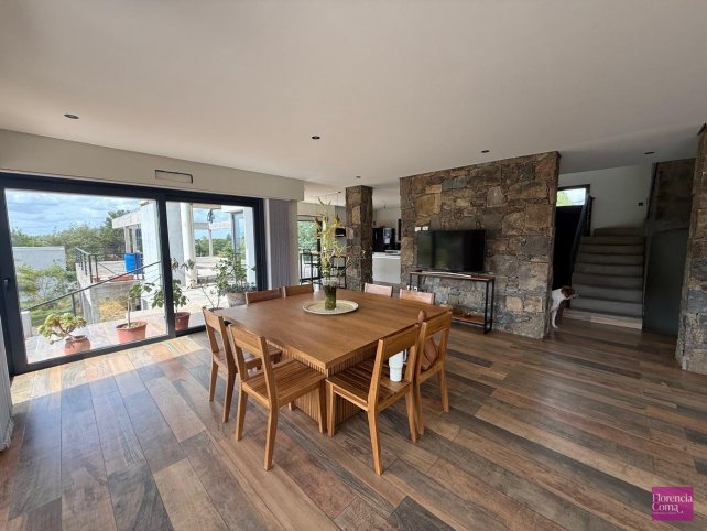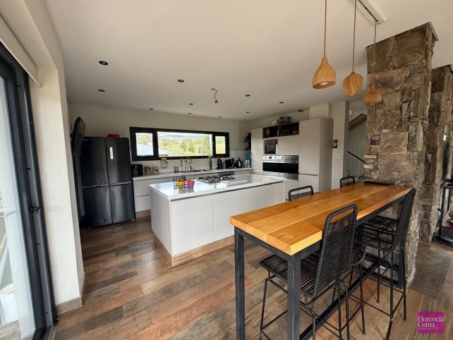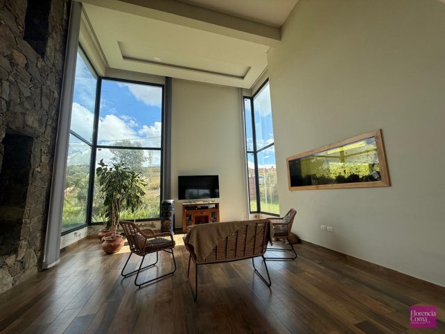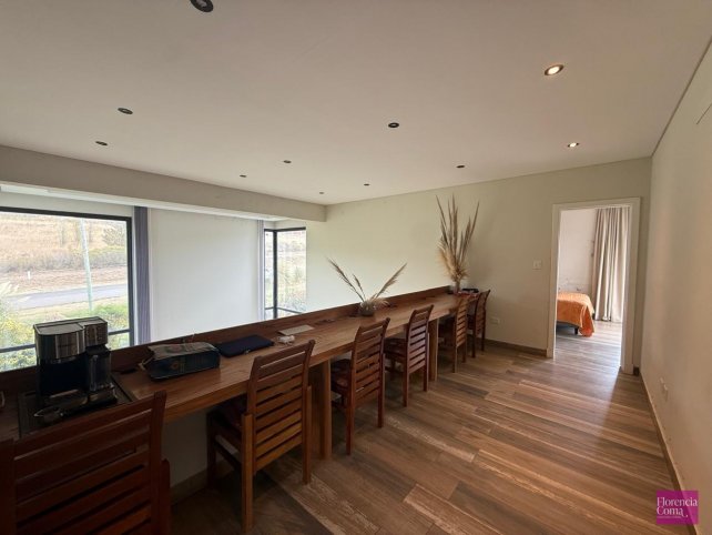 En planta baja se encuentra un espacioso living comedor con ventanales de doble altura con vista a las sierras y cocina integrada con una isla y amoblamientos Johnson y mesadas Corian. También cuenta con toilette y un escritorio.