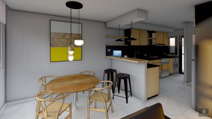 Con 42 m² inteligentemente diseñados, cada decisión de esta unidad fue tomada con coherencia y precisión. La paleta en negro atraviesa todos los elementos: mesadas y barra en mármol negro Brasil, aberturas de aluminio negro con doble vidrio DVH, iluminación LED negra de estética de revista y pisos de porcelanato en todos los ambientes. No es decoración, es diseño con identidad. El resultado es un departamento que se siente de otro nivel desde el primer vistazo.