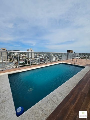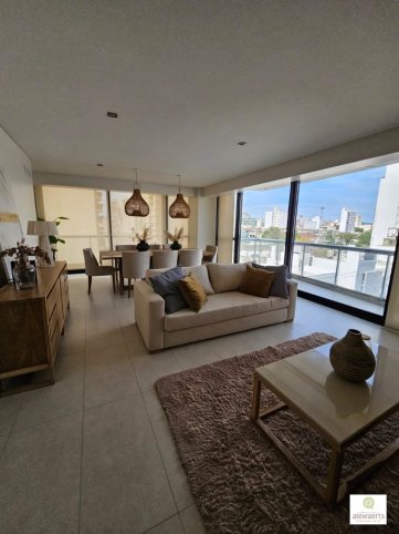 Ofrecemos en venta hermoso departamento en edificio de categoría. La propiedad cuenta con amplio living-comedor con increibles vistas e iluminación natural y balcón, cocina, cuatro baños, tres habitaciones con placares (la principal con vestidor). Además, dos cocheras y dos bauleras.
