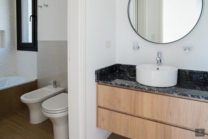 En planta alta, se ubican tres dormitorios, uno de ellos en suite con vestidor, mientras que los otros dos cuentan con placares completos. Un baño completo con antebaño asiste a estos dormitorios. Desde este nivel se accede a una espectacular terraza, ideal para disfrutar del aire libre, los atardeceres y crear un espacio privado de relax.
