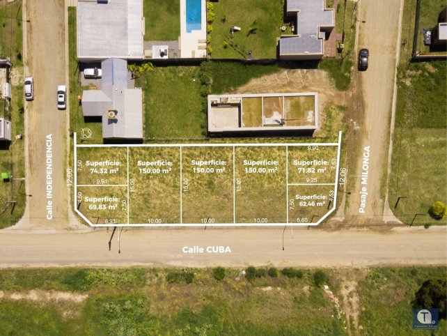 Medidas: 3 LOTES de 10 mts de frente por 15 mts de fondo, 4 LOCALES de 7,50 mts de frente por 9,90 mts de fondo.